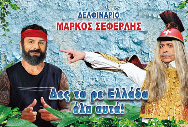 14€ από 20€ στην κορυφαία επιθεώρηση του καλοκαιριού ''ΔΕΣ ΤΑ ΡΕ ΕΛΛΑΔΑ ΟΛΑ ΑΥΤΑ!'', με τον Μάρκο Σεφερλή στο Δελφινάριο!